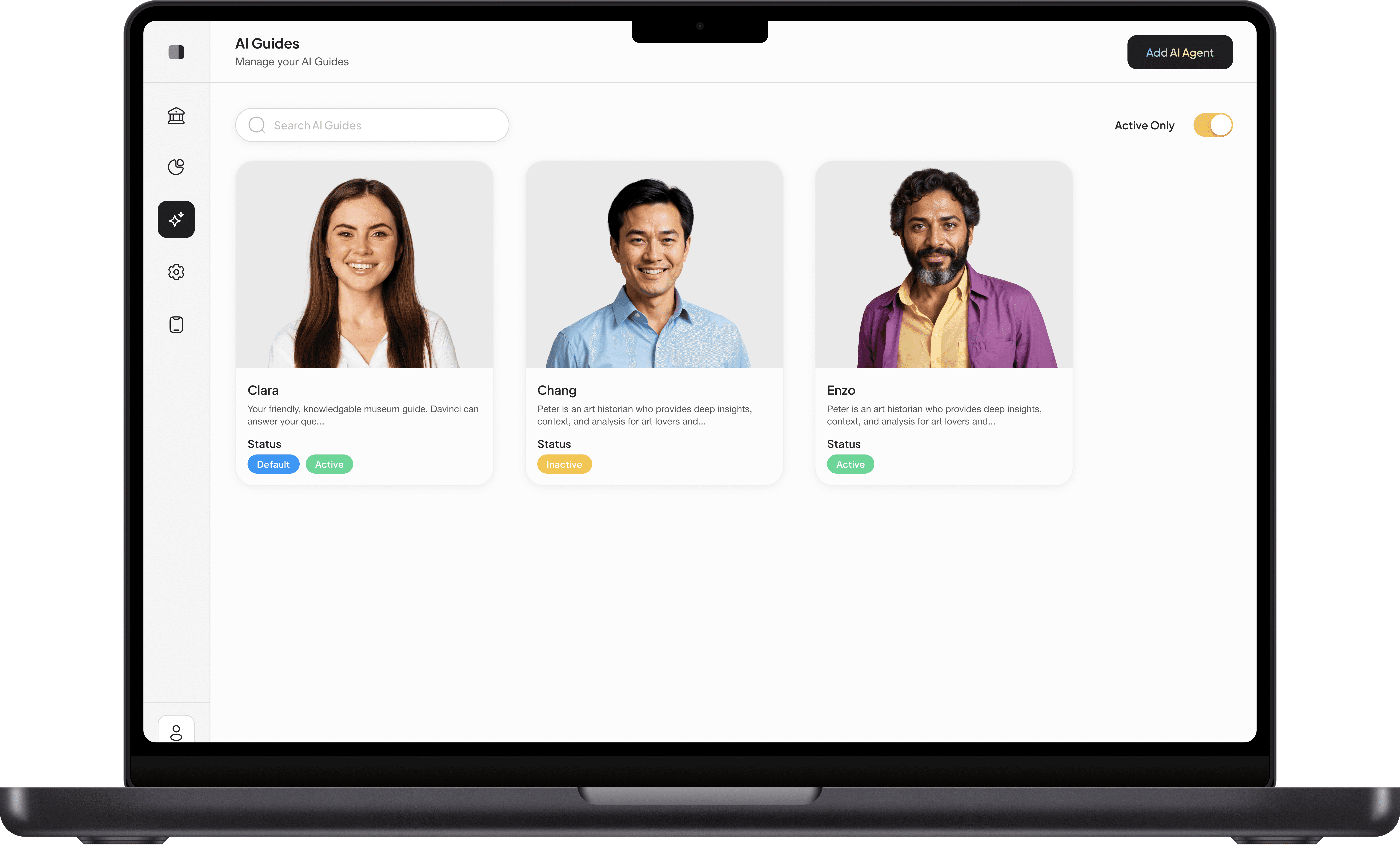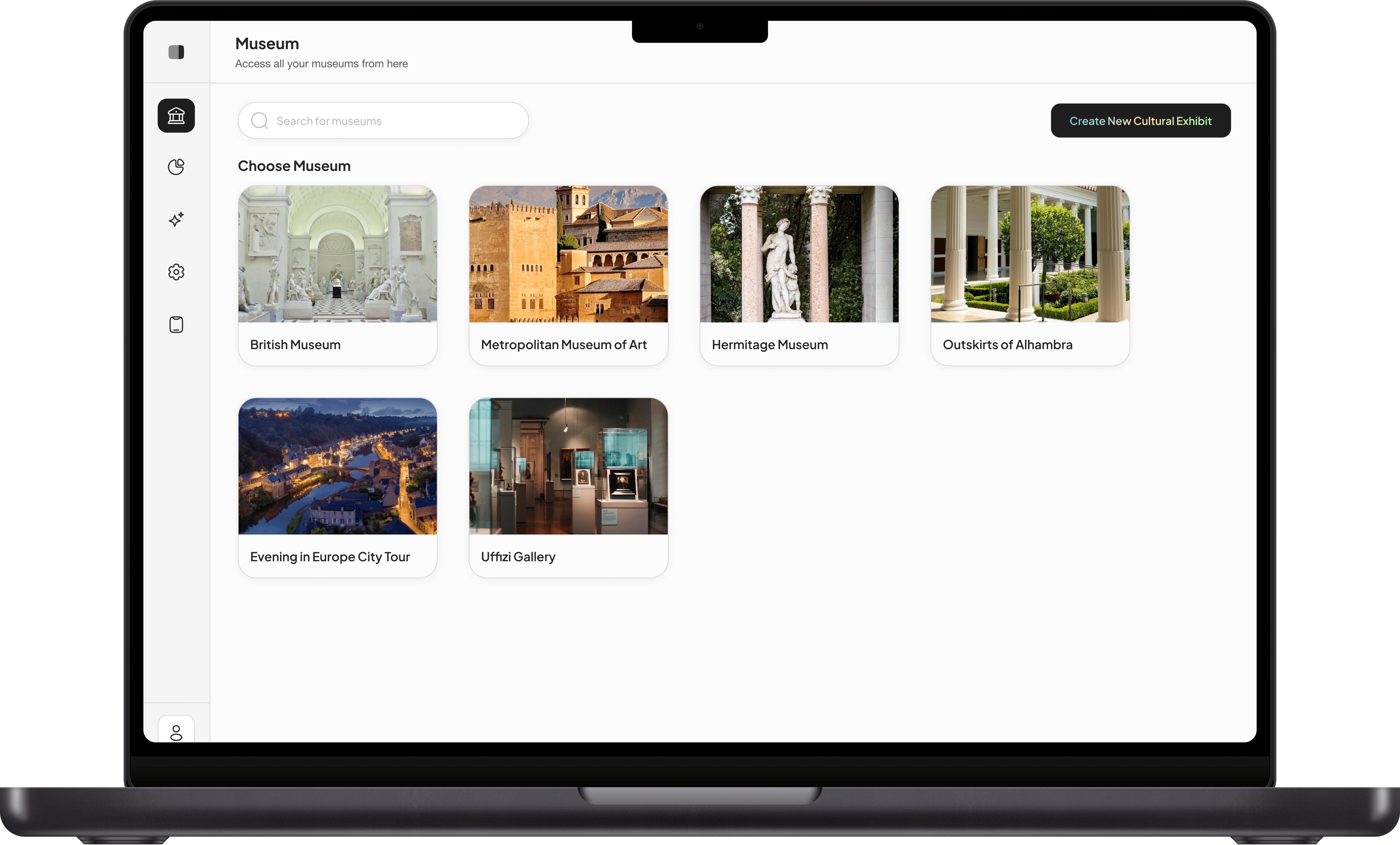 Create museum-specific tours with custom audio, visuals and storytelling styles tailored to each exhibition.